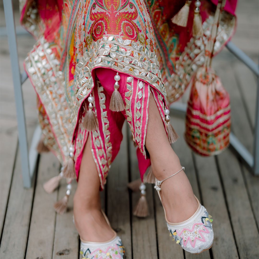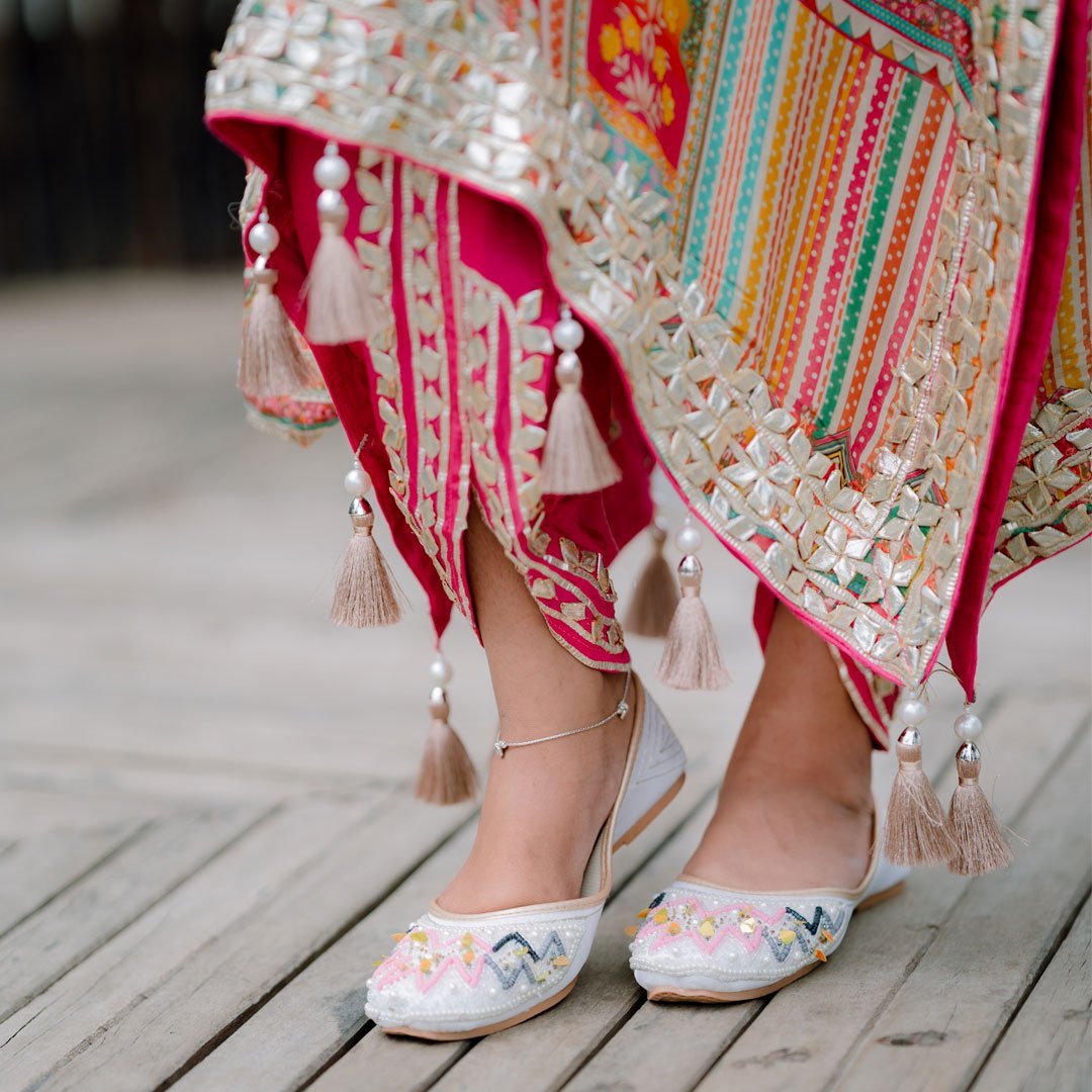 একজোড়া টিল ও গোল্ডেন এমব্রয়ডার্ড নগ্রা জুতা 👣